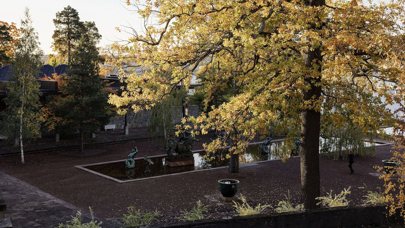 skulpturparken. Ekarna klär sig i guld och fontänerna porlar ännu en tid