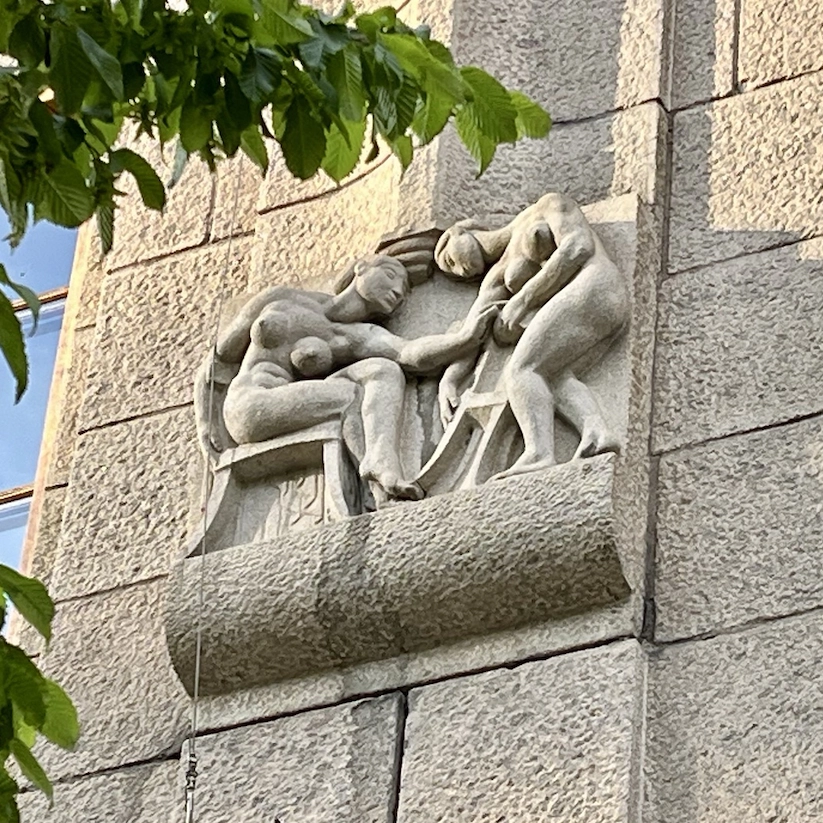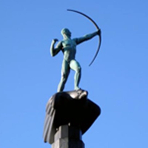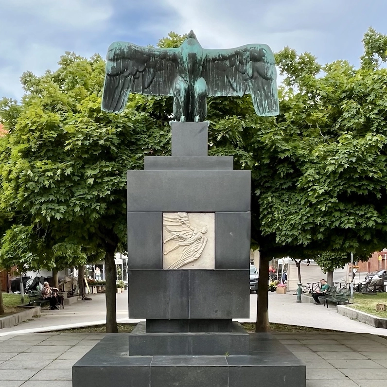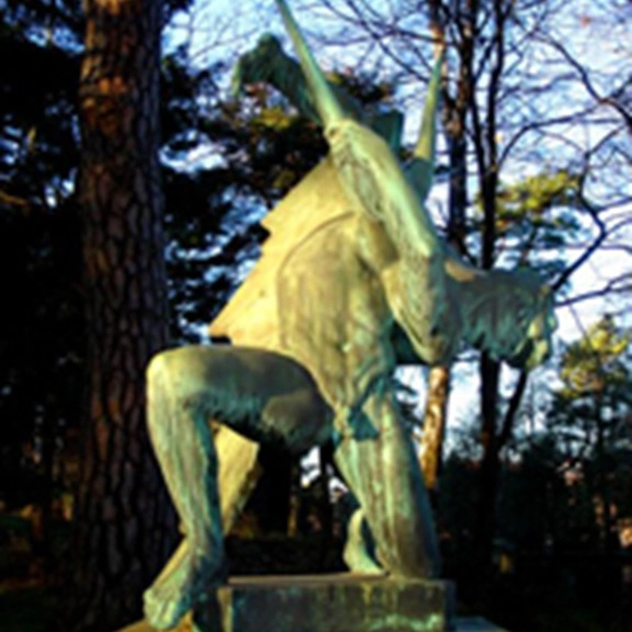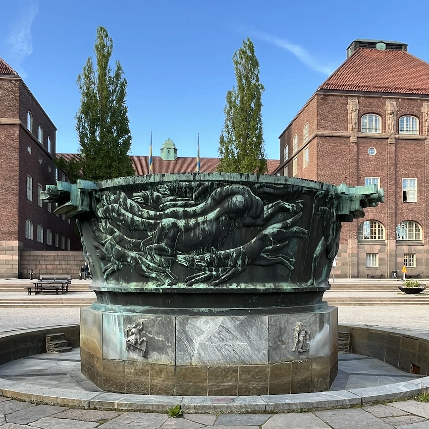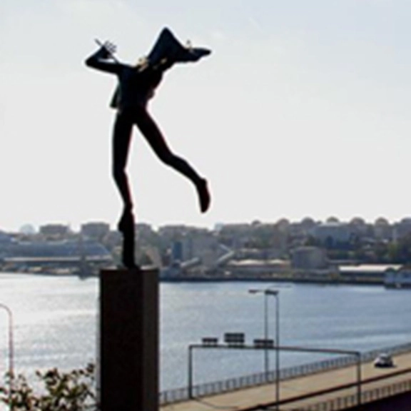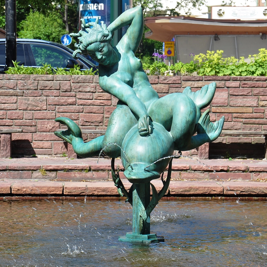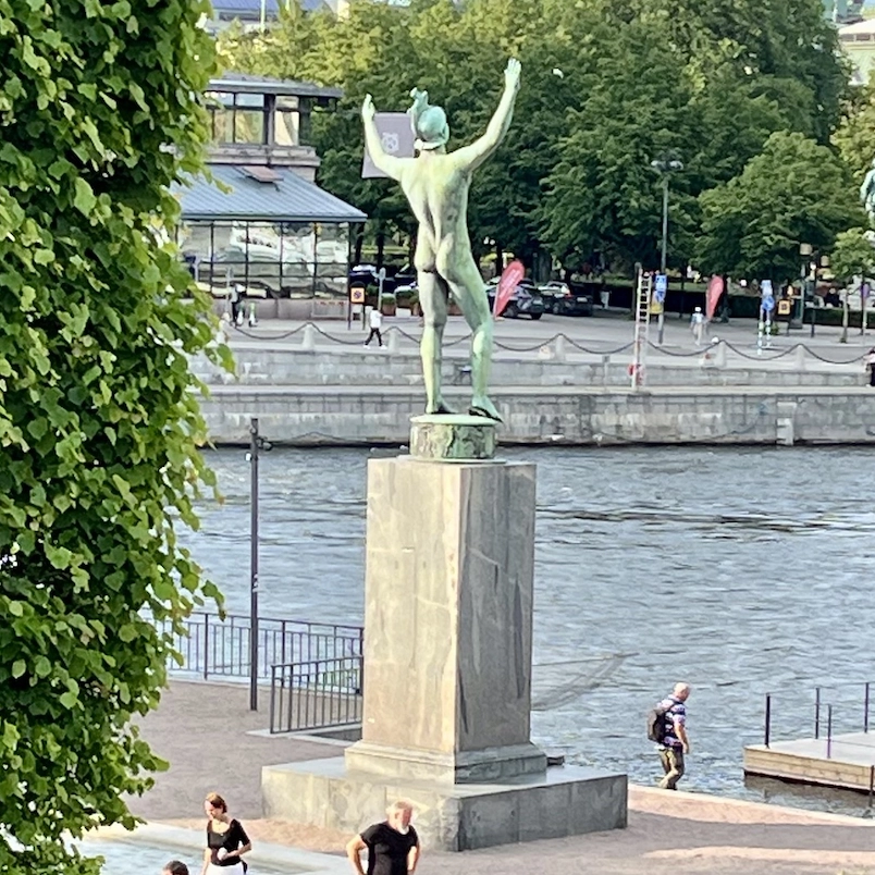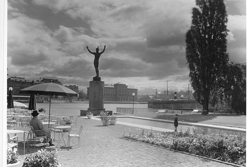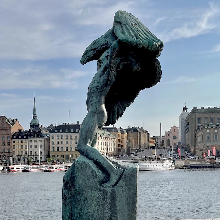 At the entrance to Stockholm, this 24-meter-high fountain rises, depicting God in the act of placing stars in the sky, assisted by an angel. The sculpture was completed by Carl Milles’s assistant, Marshall Fredericks, and was erected in 1995. Originally, the sculpture was intended to adorn the site in front of the United Nations building in New York. The rainbow motif symbolizes the arch as a unifying force and contributes to the sculpture’s role as a monument to peace.