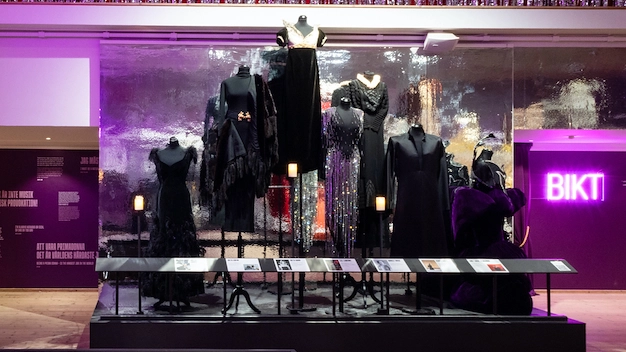 Cathedral: Black and silver rhinestone dress worn in 1995 in the show number "Två gånger Lill" in the SVT program "Mycke’ nöje" with Christer Lindarw.