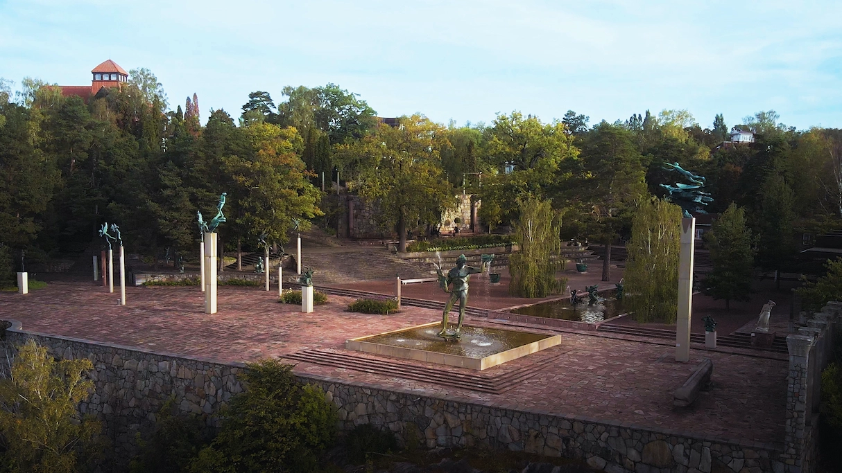 - Vandra genom grönskande terrasser med imponerande skulpturer och fontäner av Carl Milles, med utsikt över Stockholms inlopp.
