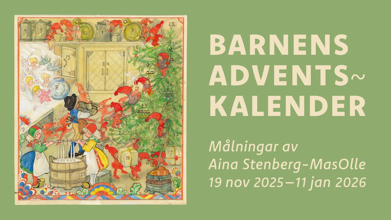 Inför advent och jul presenterar Millesgården en mindre utställning tillägnad konstnären Aina Stenberg-MasOlle (1885–1975). På uppdrag av Sveriges flickors Scoutförbund – det som idag är Scouterna – skapade hon Sveriges allra första adventskalender, inspirerad av tyska förlagor. I det julpyntade konstnärshemmet visas nu ett handplockat urval av hennes originalillustrationer till adventskalendrarna – en sagolik värld fylld av julmagi som väcker både nostalgi och nyfikenhet hos såväl barn som vuxna.